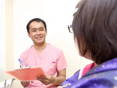 歯科医院に行く時や治療台に座っている時、患者さんはどうしても緊張してしまうものです。その緊張感をほぐすのも私たちの役割です。治療内容に関することから、日常の雑談まで、患者さんとのコミュニケーションを大事にしています。良い雰囲気を作って、患者さんに通って頂きやすい歯科医院でありたいと考えています。